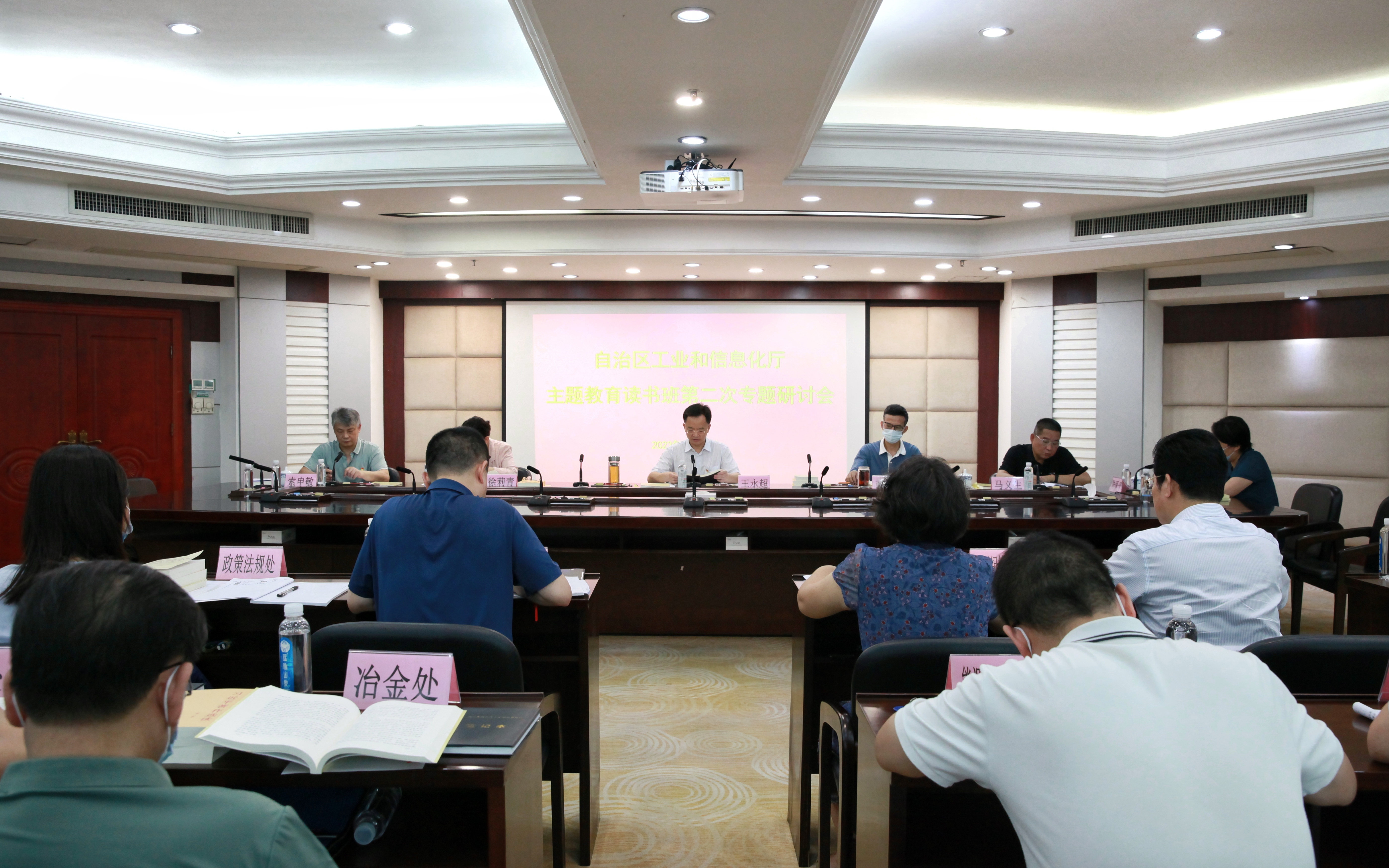 5月21日,大发快三官网 召开“深入学习贯彻习近平新时代中国特色社会主义思想 为建设新时代壮美广西贡献工信力量”读书班第二次专题研讨会暨党组理论学习中心组2023年第四次学习(扩大)会,本次会议主题是:学深悟透习近平总书记关于制造强国战略的重要论述和关于网络强国的重要思想,以新发展理念引领广西制造业高质量发展。会议由厅党组书记、厅长王永超主持,会上集中学习了《习近平经济思想学习纲要》有关篇目,厅党组理论学习中心组成员围绕本次学习作交流发言。