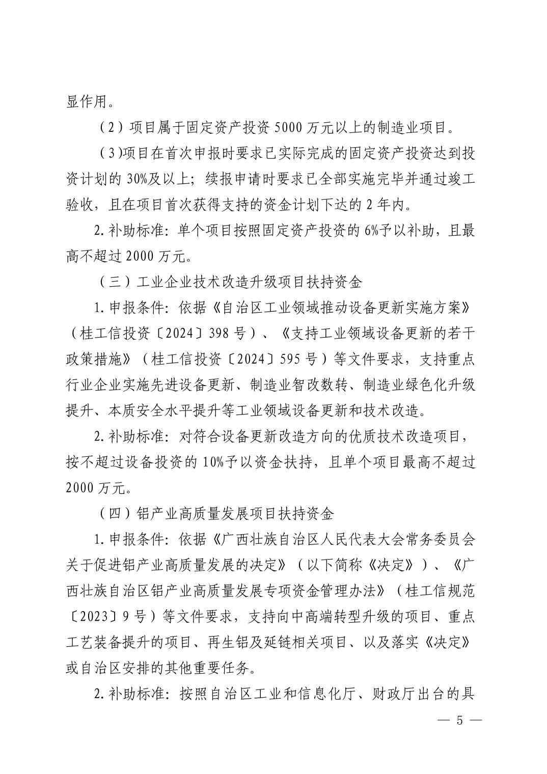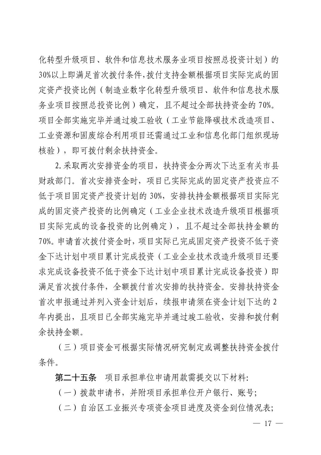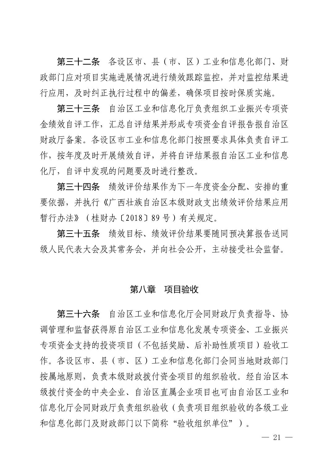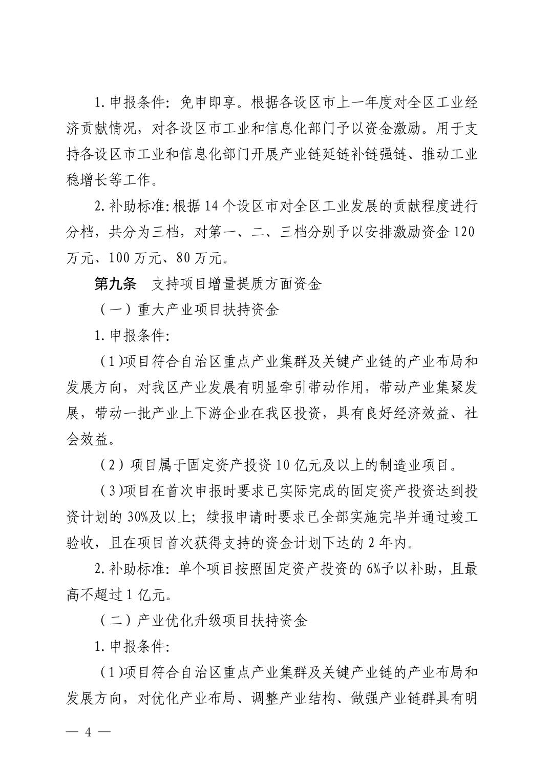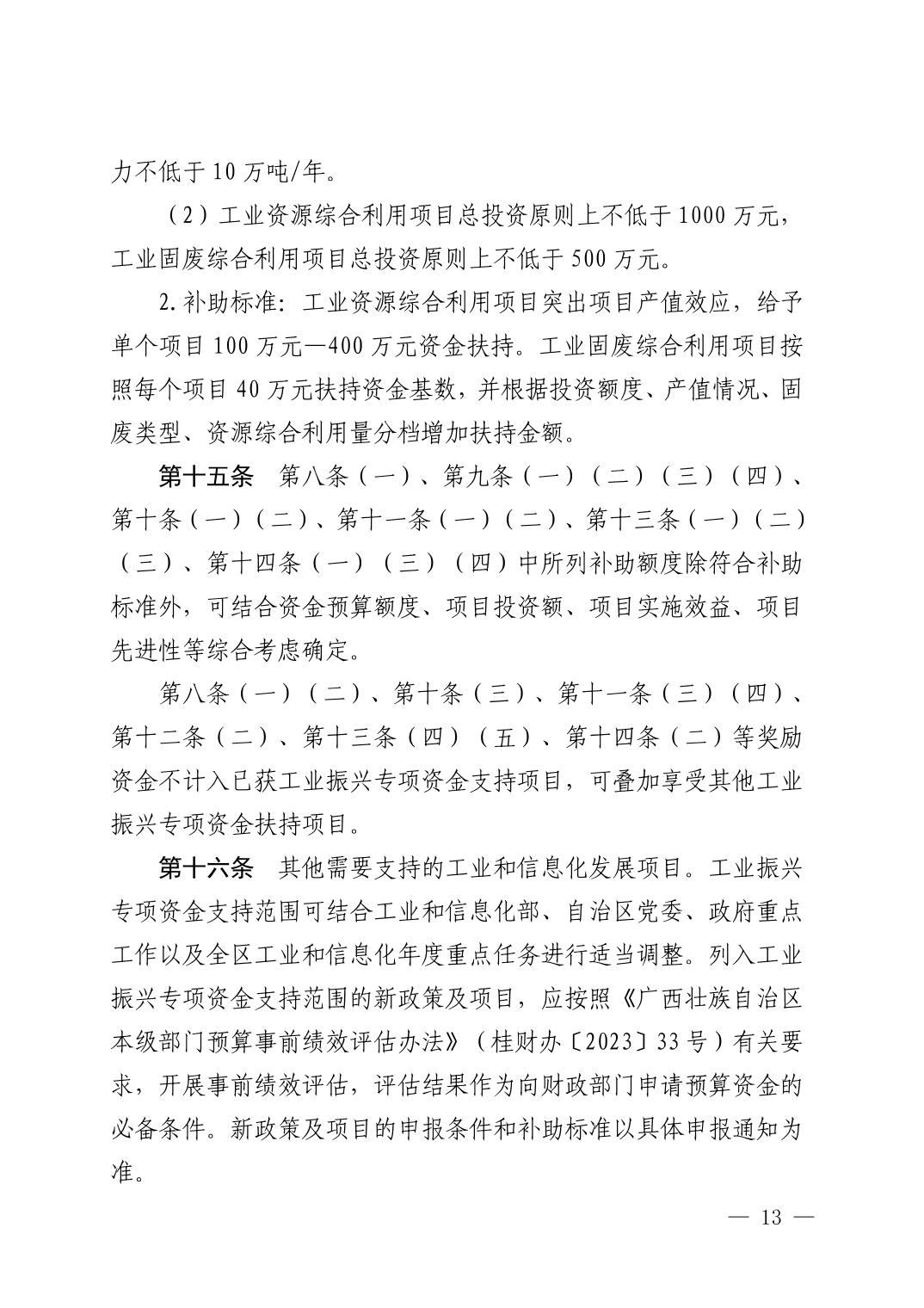 为进一步加强和规范自治区统筹支持工业振兴专项资金的管理,提高资金使用效益,根据《广西壮族自治区统筹支持工业振兴专项资金管理办法》(桂工信规范〔2024〕13号)精神,我们制定了《广西壮族自治区统筹支持工业振兴专项资金管理实施细则》。现印发你们,请认真贯彻执行。