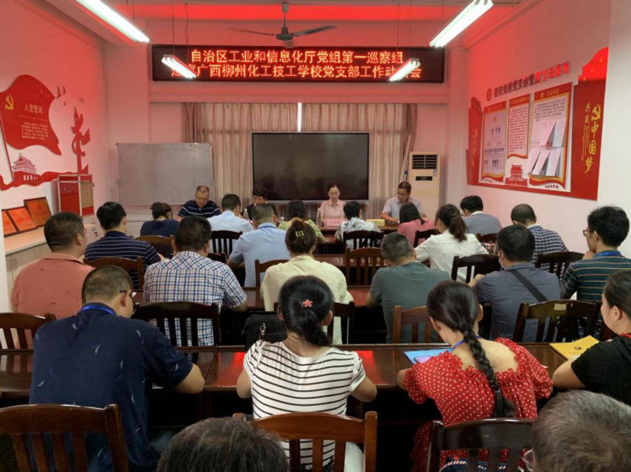 第一巡察组全体成员,广西柳州化工技工学校党支部支委成员、全体干部职工参加会议。
